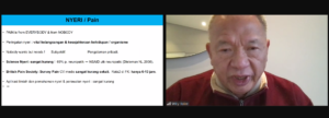 Narasumber kedua, Dr. Willy Halim, MD, FIPP, PhD, membahas metode inovatif dalam menangani nyeri kronis melalui pendekatan Three in One, yang mencakup Manual Medicine, Deep Friction/Massage, dan Shock Wave Therapy (SWT). Nyeri dianggap sebagai pengalaman subyektif yang kurang mendapat perhatian dalam dunia medis, meskipun memengaruhi banyak orang lebih dari penyakit kronis lainnya. Tren dalam pengobatan nyeri saat ini mengarah pada pendekatan konservatif dan minimal invasif, dengan 85% penderita memilih manajemen nyeri dibandingkan pembedahan.