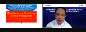 I Wayan Widana, Sp.An-Ti., Subsp MN (K)., FIPM., FIPP., CIPS. selaku narasumber terakhir, memberikan pemaparannya mengenai Radiofrequency Neurotomy: Terobosan Baru dalam Manajemen Nyeri. Radiofrequency Neurotomy (RFN) atau Radiofrequency Ablation (RFA) menjadi metode inovatif dalam penanganan nyeri kronis yang melibatkan penghantaran energi termal ke jaringan saraf untuk menghambat sinyal nyeri. Metode ini semakin diminati karena menawarkan alternatif minim invasif dibandingkan terapi opioid jangka panjang atau prosedur bedah. Sejarah teknik ini bermula pada tahun 1930-an dengan penggunaan awal pada gangguan saraf trigeminal dan berkembang dengan teknologi modern seperti Cooled Radiofrequency Ablation (CRFA) yang memberikan efek lebih luas dan tahan lama. RFN bekerja dengan menghambat transmisi sinyal nyeri melalui pemanasan saraf target tanpa menyebabkan kerusakan permanen. Penelitian menunjukkan bahwa teknik ini efektif dalam mengurangi nyeri muskuloskeletal dan neuropatik dengan risiko efek samping yang lebih rendah dibandingkan prosedur ablasi lainnya.